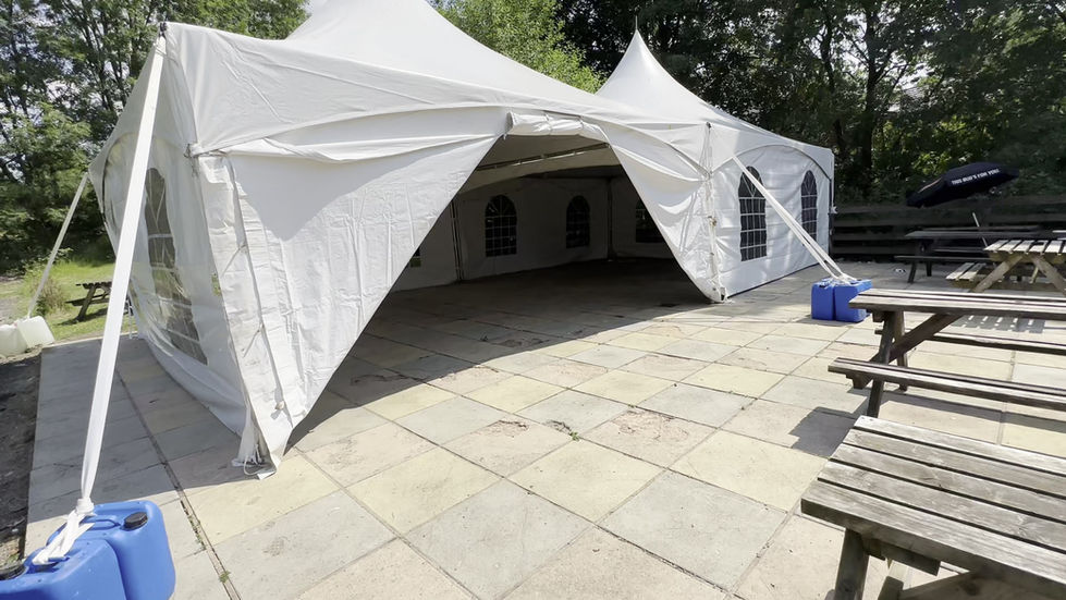 6x12m pagodas with festoon light marquee for a wedding after party.